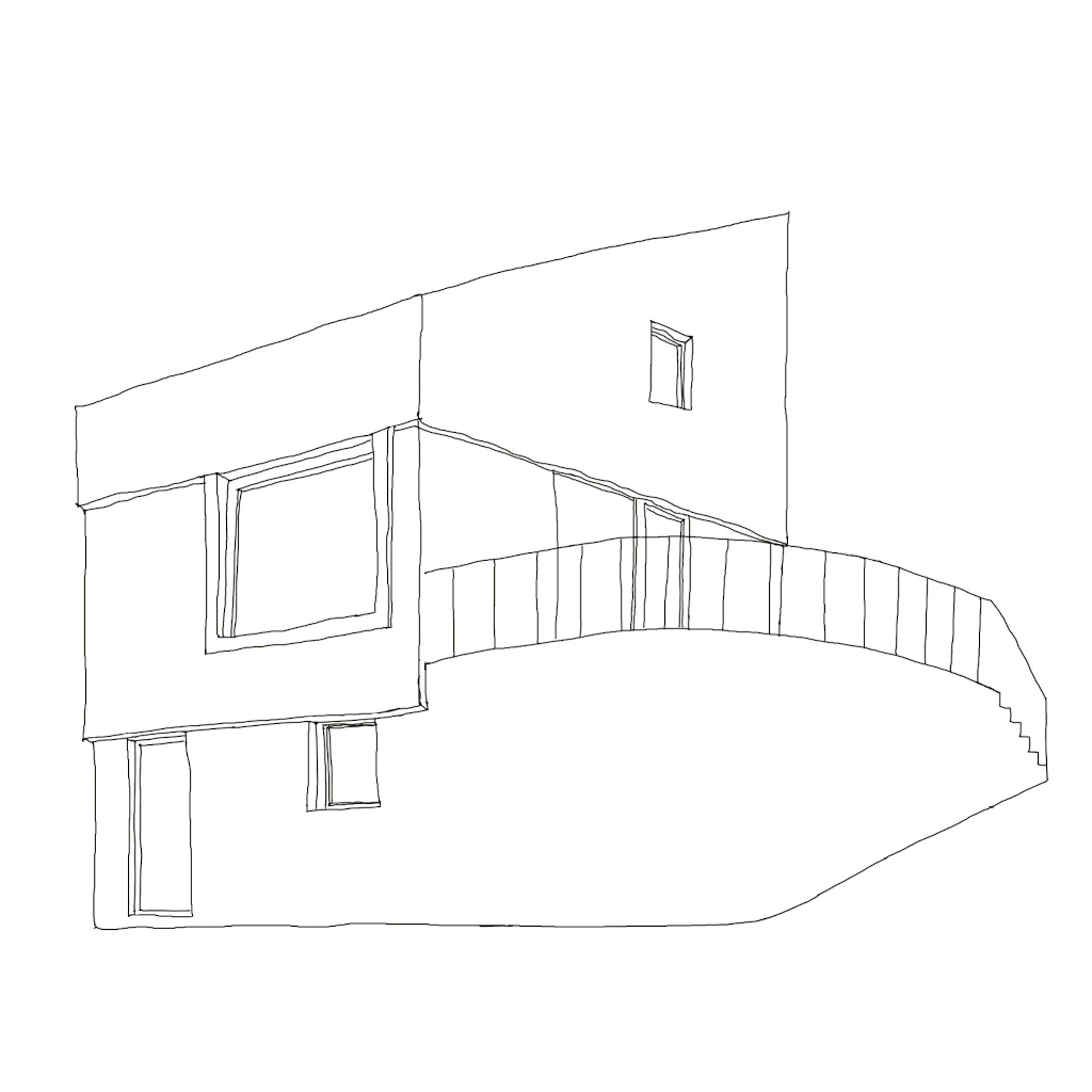 Chatička se střechou ve sklonu svahu do kterého je položena a šindelovou fasádou.
